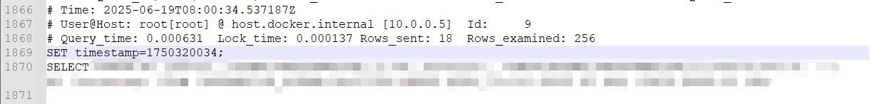如下图所示,一段慢查询内容一般是以# Time开头,查询语句SELECT XXXX结尾。