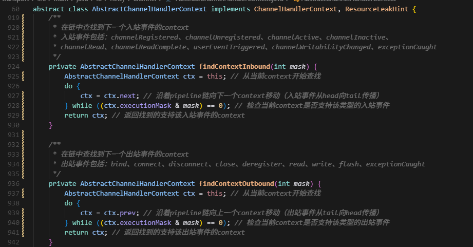 然后把这些标识传入对应的入站或出站方法,通过ChannelHandler的executionMask字段(表示该Handler支持哪些事件类型)与运算,结果为0的就说明该Handler不支持该事件类型。