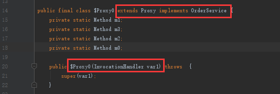 这是为何?可以反编译看一下自动生成的代理类,因为其集成的Proxy类,实现的OrderService接口,因此只能通过父类接收。