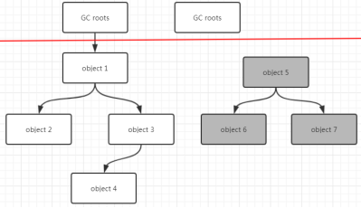 如下图,判断对象通过引用是否可达Gc roots,如果不可达则回收,可达则保留。
