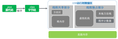 直接内存不是JVM运行时数据区的一部分,也不是《Java虚拟机规范》中定义的内存区域,是我们常说的堆外内存。