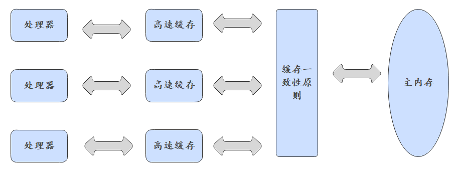 高速缓存解决了CPU与内存之间的速度矛盾,但也带来了更高的复杂度:缓存一致性的问题。多CPU的的系统中,每个CPU都有自己的高速缓存,当不同CPU读取同样的数据进行缓存,然后进行不同的运算,最终写入主内存以哪个CPU为准?