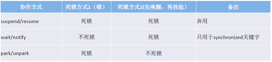 JDK中对于需要多线程协作完成某一任务的场景,提供了对应API支持。例如:wait/notify、park/unpark和被弃用的suspend和resume。