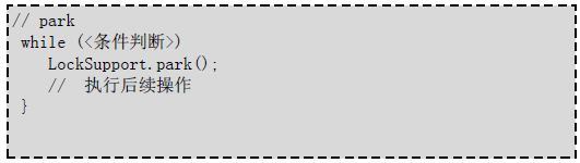 在同步代码块中使用,容易出现死锁,因为park不会释放锁,代码示例: