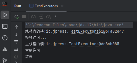 执行结果:程序正常执行完成,因为两边获得的锁不一样,相当于没有锁住。