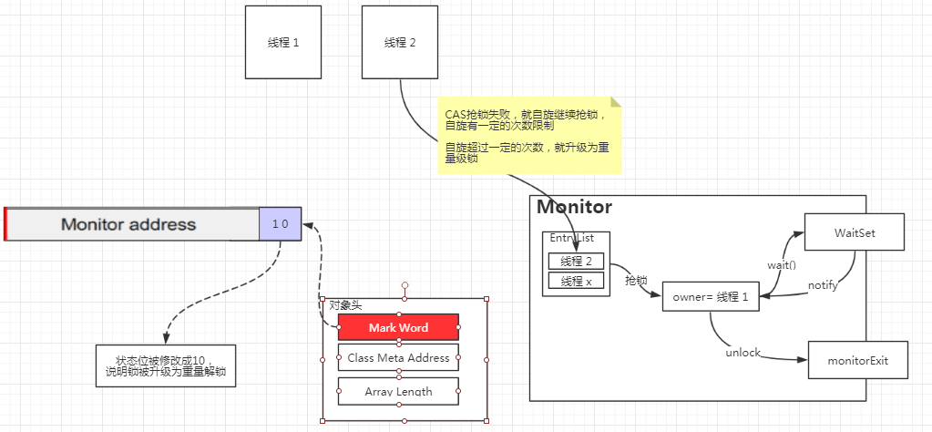那么谁获得了锁记录在哪里?记录在Monitor中有个onwer字段,会标记谁获取了锁。