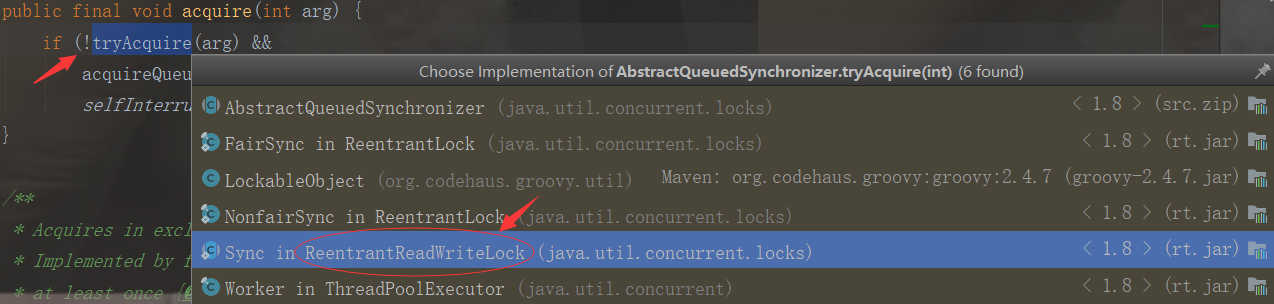 在代码层的判断中,如果S不等于0,当写状态(S&0x0000FFFF),而读状态(S>>>16)大于0,则表示该读写锁的读锁已被获取。
