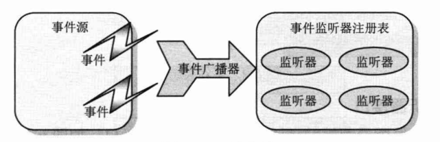 在一个完整的事件体系中,除了事件和监听器以外,还应该有3个概念;